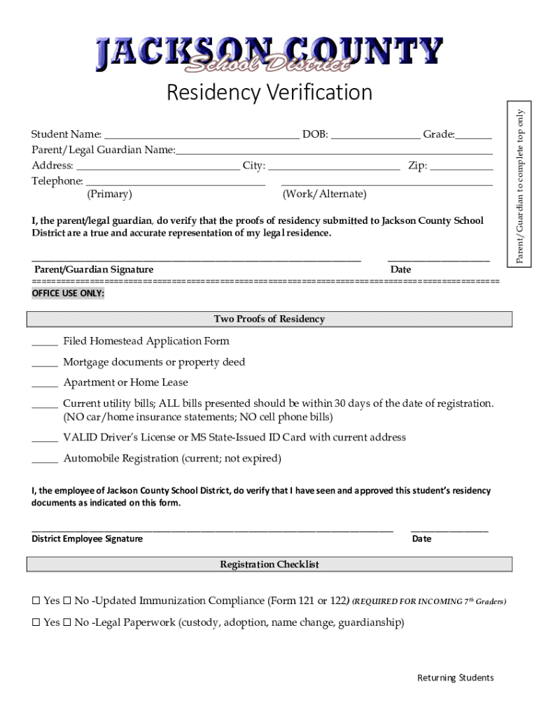 Get the free Residency Verification - Jackson County School District
