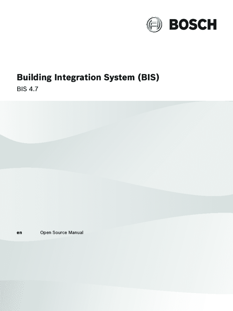 Building Integration System (BIS) BIS 4.7enOpen Source ManualBuilding Integration System (BIS)Table of contents en3Table of contents 1Introduction41.1OpenSSL42Components overview53The licenses 4.7143.1ActiveVB