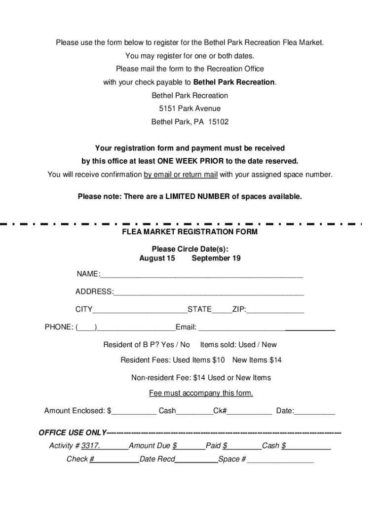 Get the free Online FLEA MARKET REGISTRATION FORM - Bethel Park ...