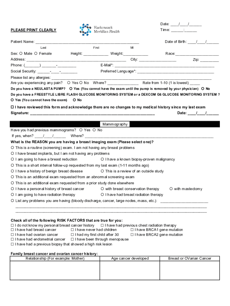 Date: / / Time: : PLEASE PRINT CLEARLY Patient Name: Last Sex: Male FemaleFirstDate of Birth: / / Height: Weight: Race: Address: Phone: () City: Zip: Email*: Social Security: Preferred Language*: