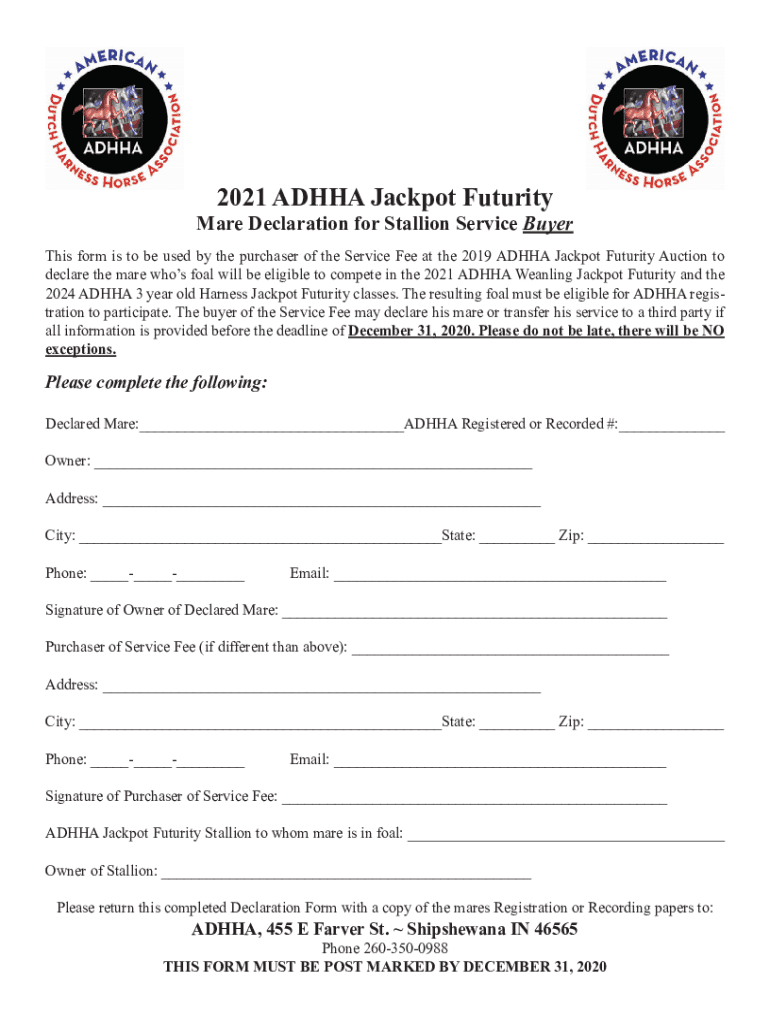 2021 ADH HA Jackpot FuturityMare Declaration for Stallion Service Buyer