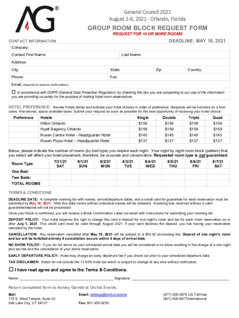 August26,2021Orlando,FloridaGROUP ROOM BLOCK REQUEST FORM