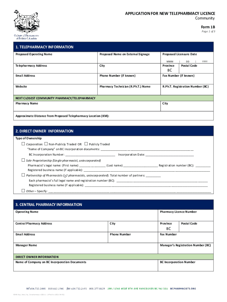 Application For Telepharmacy Licence is not the form you're looking for?Search for another form here.