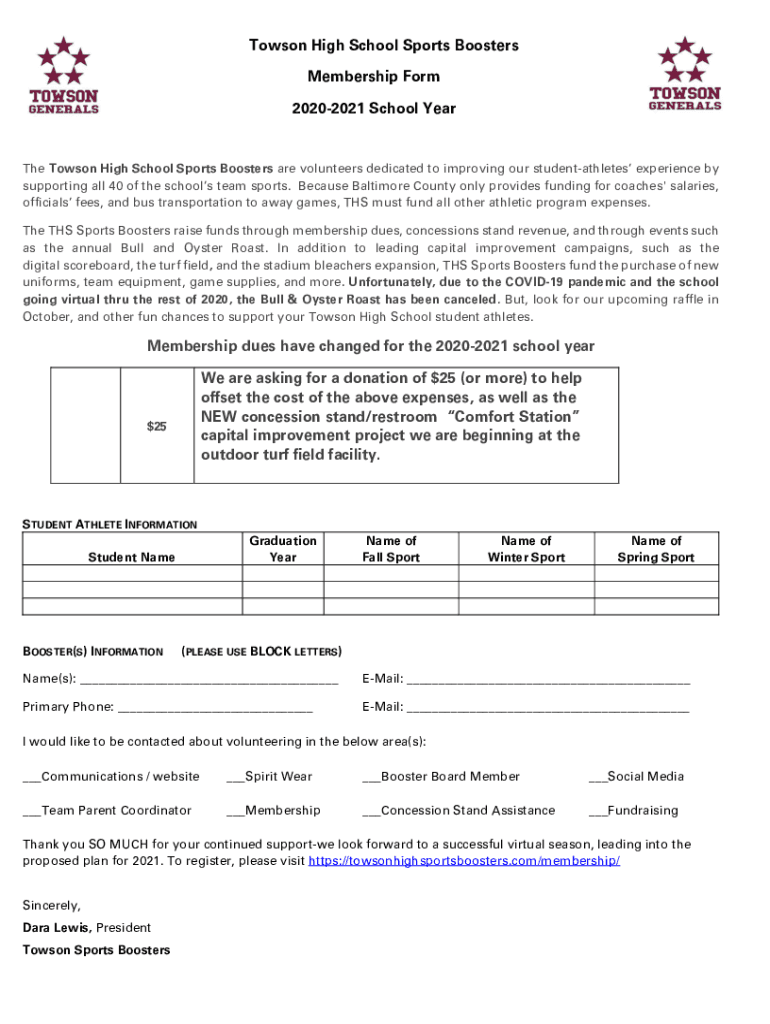 Email, fax, or share your towson high school sports form via URL. You can also download, print, or export forms to your preferred cloud storage service.