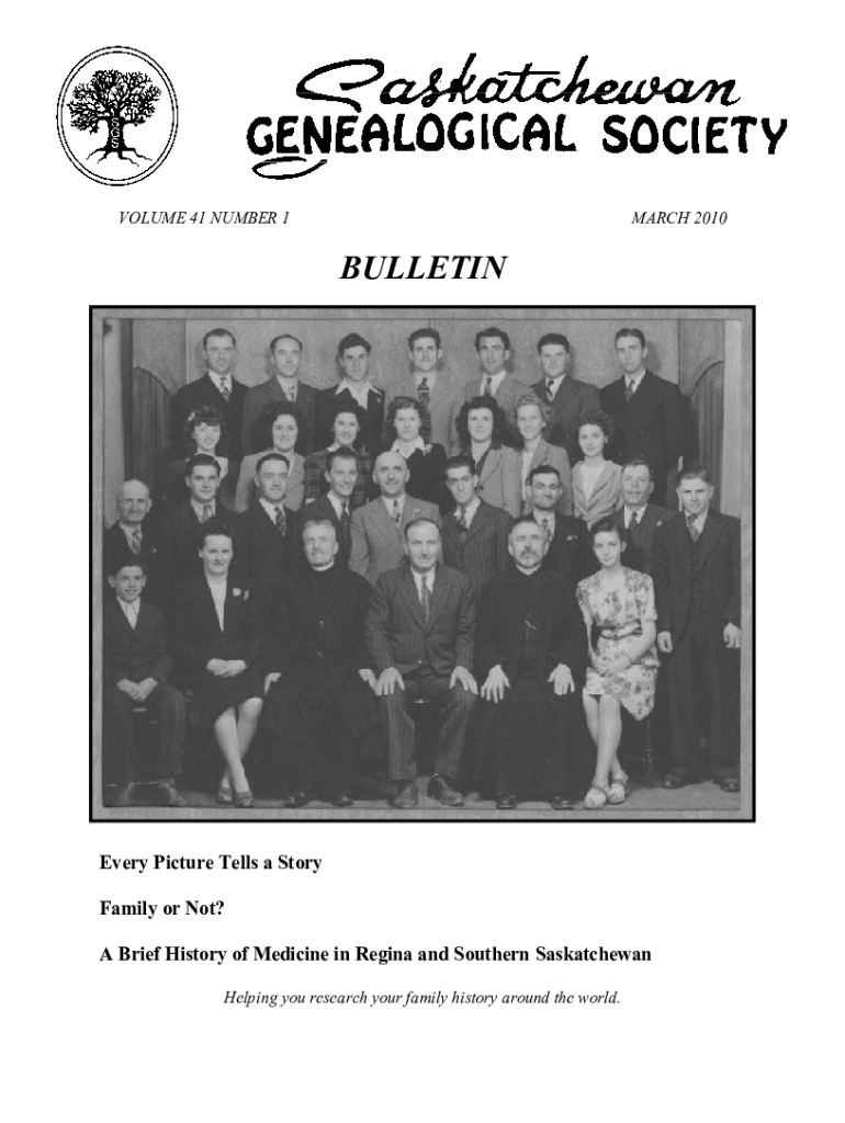 VOLUME 41 NUMBER 1MARCH 2010BULLETINEvery Picture Tells a Story Family or Not? A Brief History of Medicine in Regina and Southern Saskatchewan Helping you research your family history around the world.