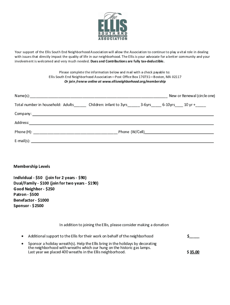 Your support of the Ellis South End Neighborhood Association will allow the Association to continue to play a vital role in dealing