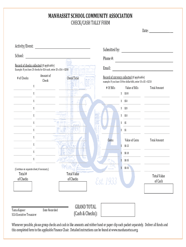 Checkcash Tally Form is not the form you're looking for?Search for another form here.