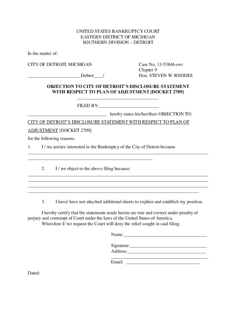 Get the free OBJECTION TO CITY OF DETROITS DISCLOSURE STATEMENT WITH ...