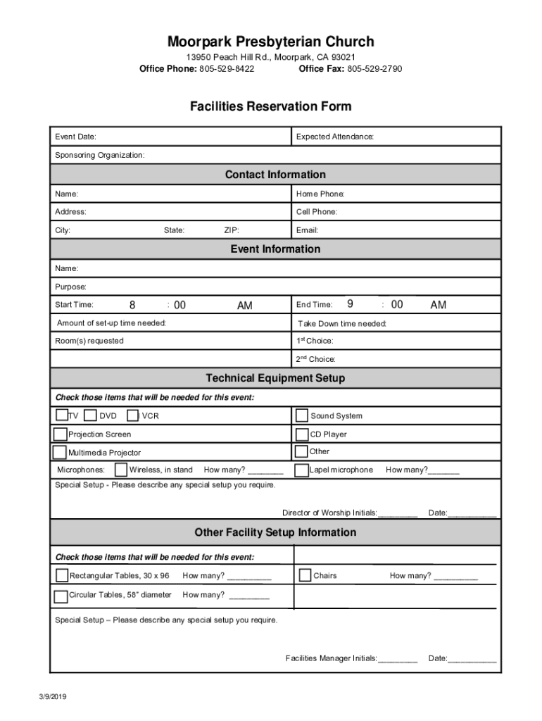 Get the free Moorpark Presbyterian Church. Facilities Use Reservation Form