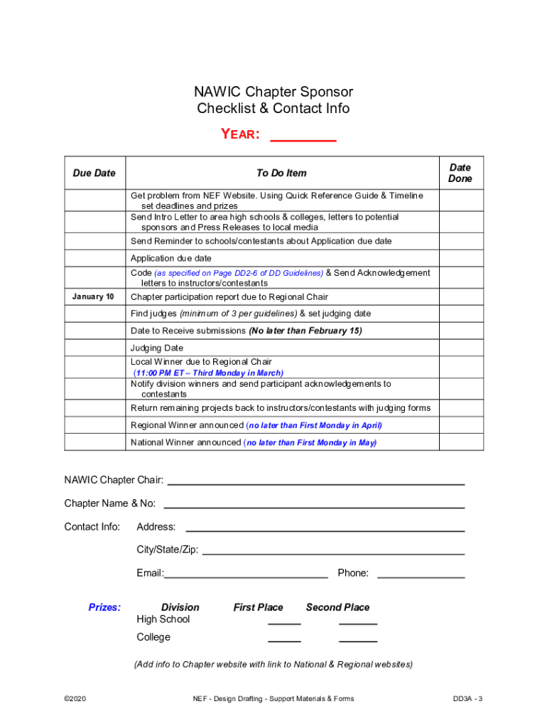 The nawic chapter sponsor checklist is a list of requirements and information that must be provided by sponsors of a NAWIC chapter.