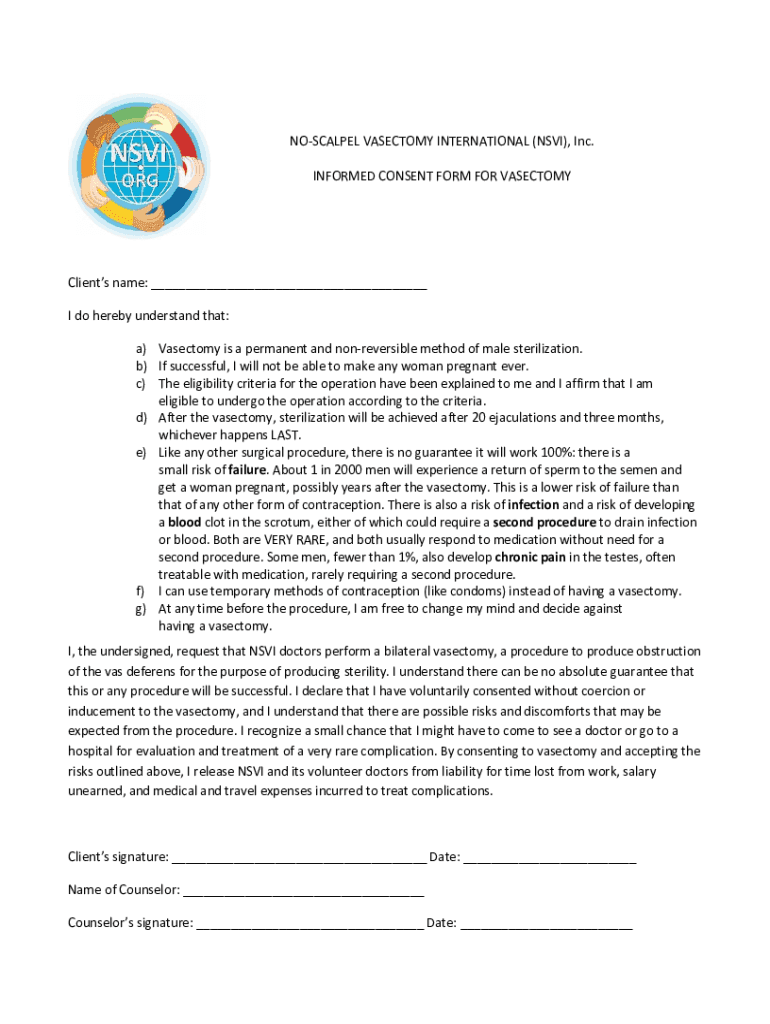 Get the free NO-SCALPEL VASECTOMY INTERNATIONAL (NSVI), Inc. INFORMED ...