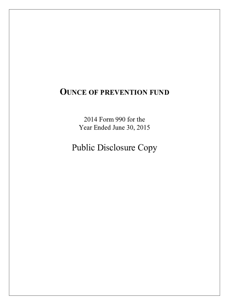 OUNCE OF PREVENTION FUND 2014 Form 990 for the Year Ended June 30, 2015Public Disclosure Copycat NOT FOR FILINGCOPY NOT FOR FILINGCOPY NOT FOR FILING Form8868Application for Extension of Time To File