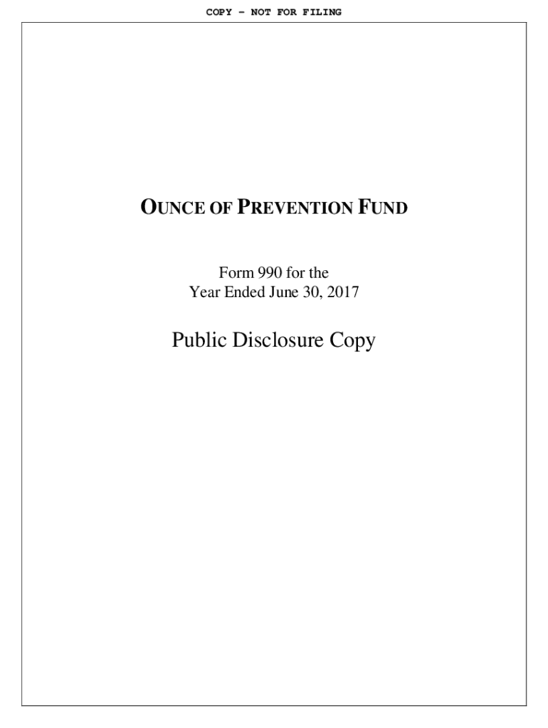 COPY NOT FOR FILINGOUNCE OF PREVENTION FUND Form 990 for the Year Ended June 30, 2017Public Disclosure Copycat NOT FOR FILING Form8868Application for Automatic Extension of Time To File an Exempt
