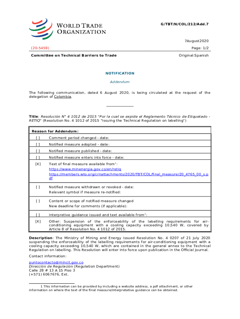 Instructions for the form The following communication, dated 6 August 2020, is being circulated at the request of the delegation of Colombia