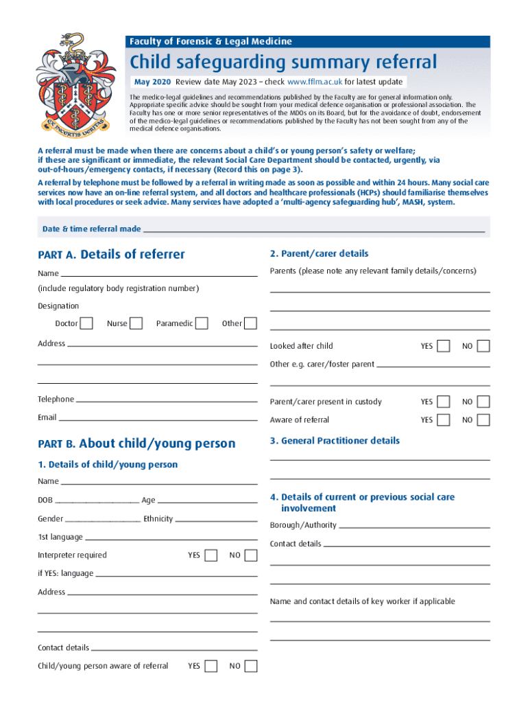 Faculty of Forensic & Legal MedicineChild safeguarding summary referral May 2020 Review date May 2023 check www.fflm.ac.uk for latest update The medico-legal guidelines and recommendations published