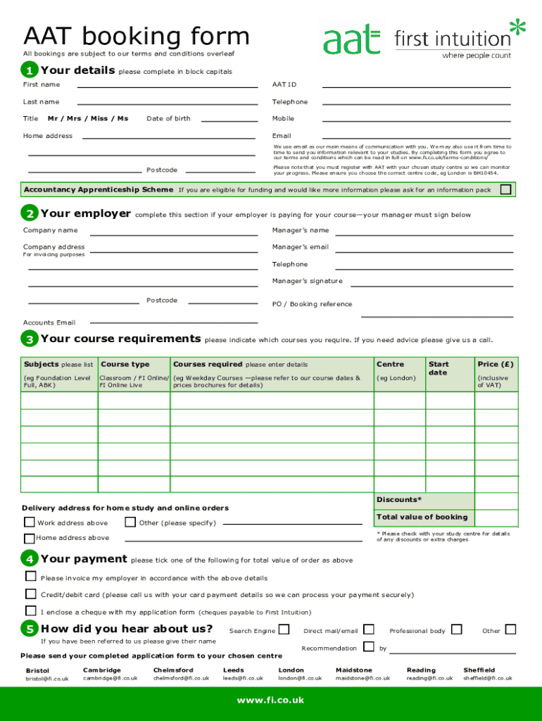 Get the free ACCA Course Booking Form - First Intuition - Fill and Sign ...