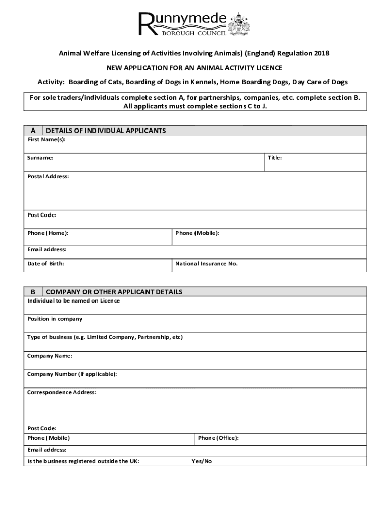 Get the free NEW APPLICATION FOR AN ANIMAL ACTIVITY LICENCE