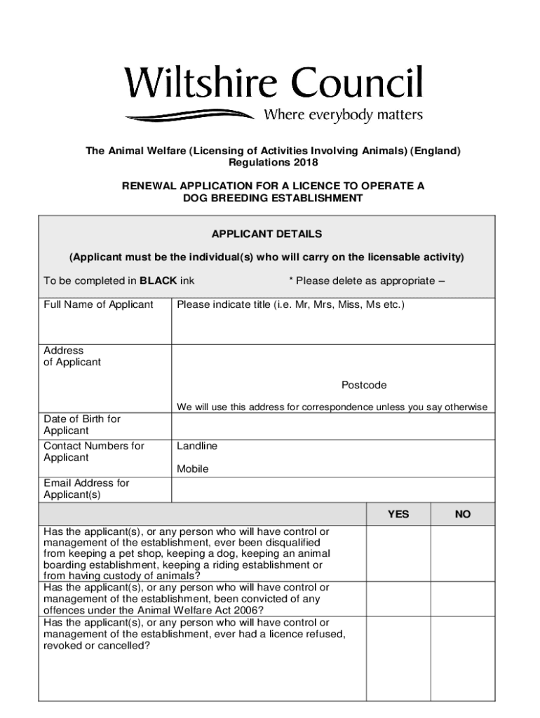 DOG BREEDING ESTABLISHMENTAPPLICANT DETAILS