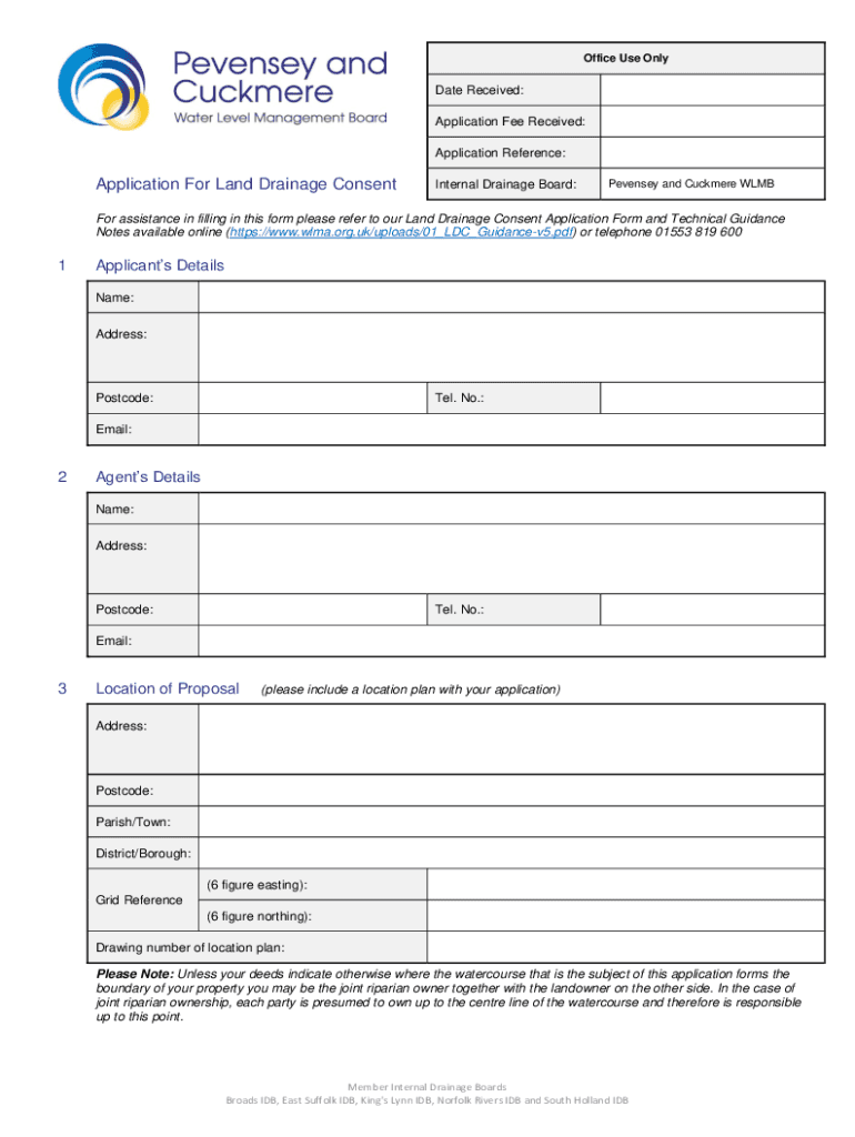 Application Reference:Application For Land Drainage ConsentInternal Drainage Board:Defense and Nuclear Labor assistance in filling in this form