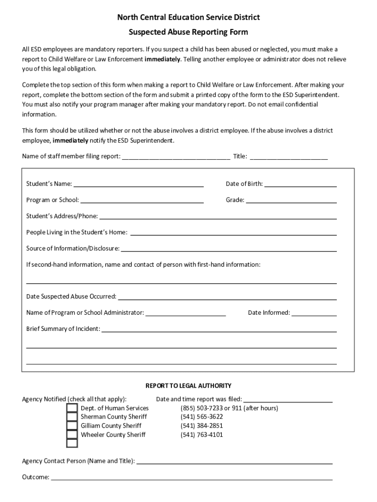 Get the free North Central Education Service District Suspected Abuse ...
