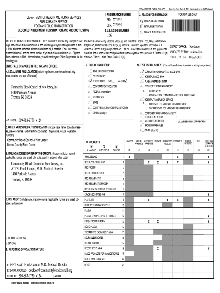 Get the free The FDA Blood Annual Registration - Community Blood Council of NJ - givebloodnj