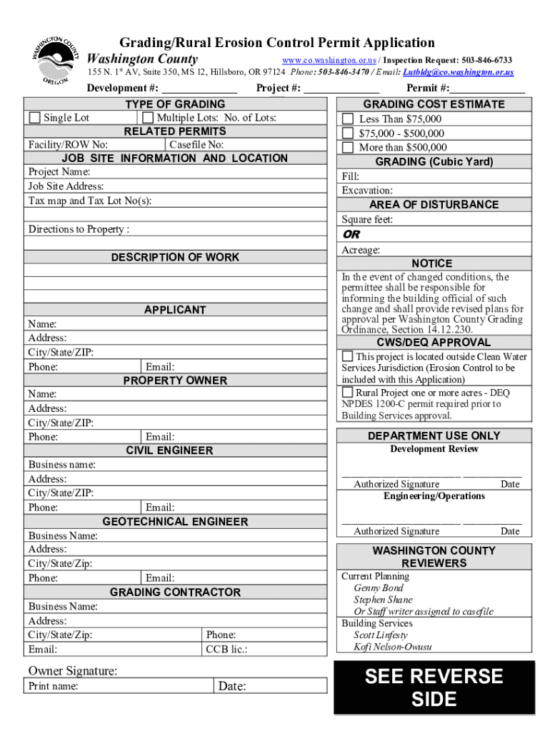 Pointiest Formulating/Rural Erosion Control Permit Application Washington County.co. Washington.or.us / Inspection Request: 5038466733 155 N. 1st AV, Suite 350, MS 12, Hillsboro, OR 97124 Phone: 5038463470