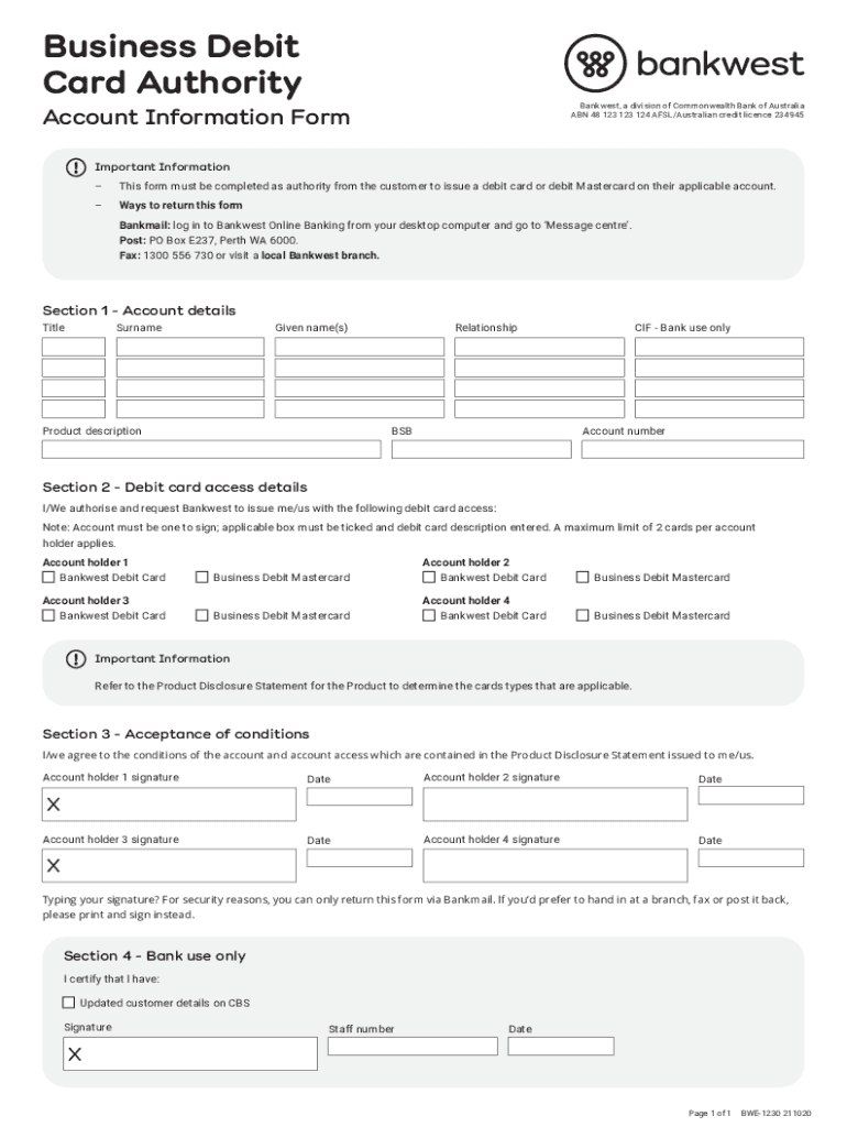 Get the free Business Debit Card Authority - Account Information Form. This form must be complete...