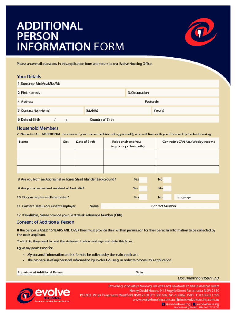 Please answer all questions in this application form and return to our Evolve Housing Office. Your Details