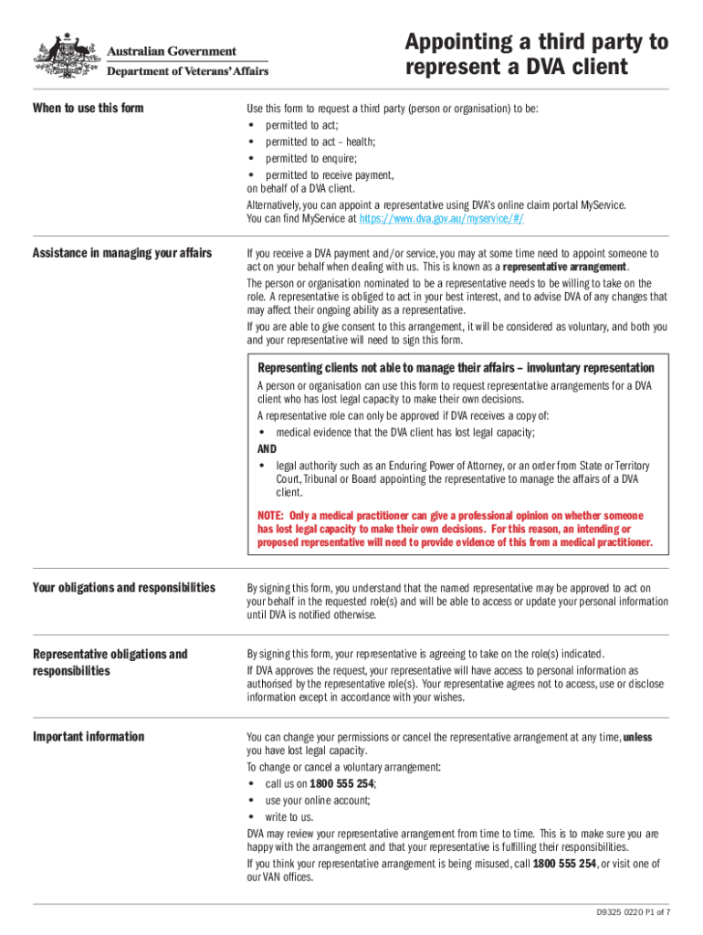 IMPORTANTAppointing a third party to represent a DVA client When to use this forms this form to request a third party (person or organization) to be: permitted to act; permitted to act health; permitted