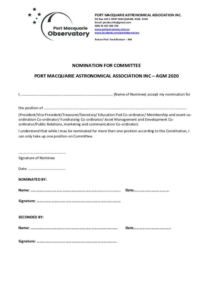 Get the free Nomination form docx (AGM) (14092020 34413 PM).pdf