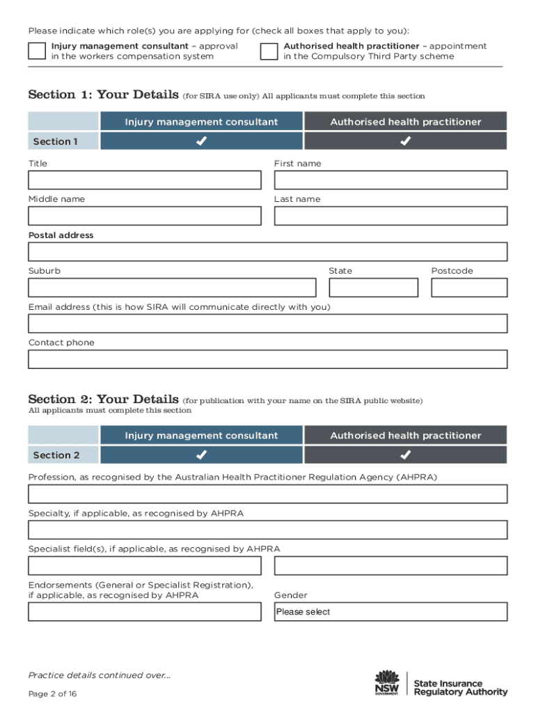 Get the free Injury management consultant and authorised health practitioner application