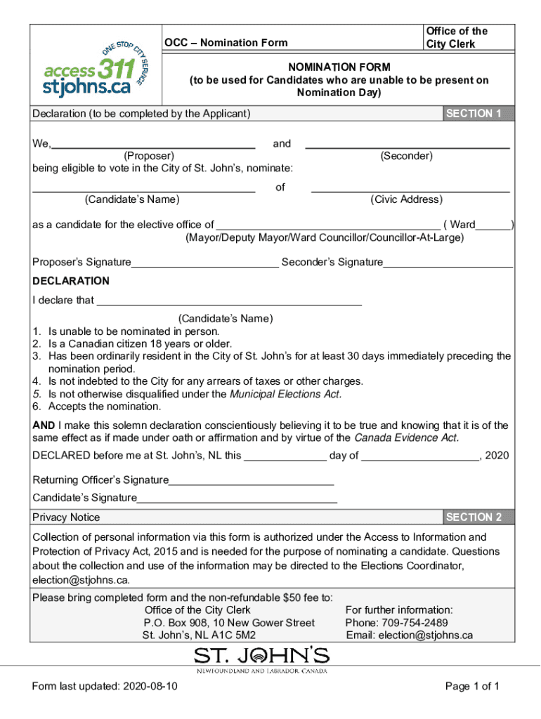 Get, Create, Make and Sign nomination form - not