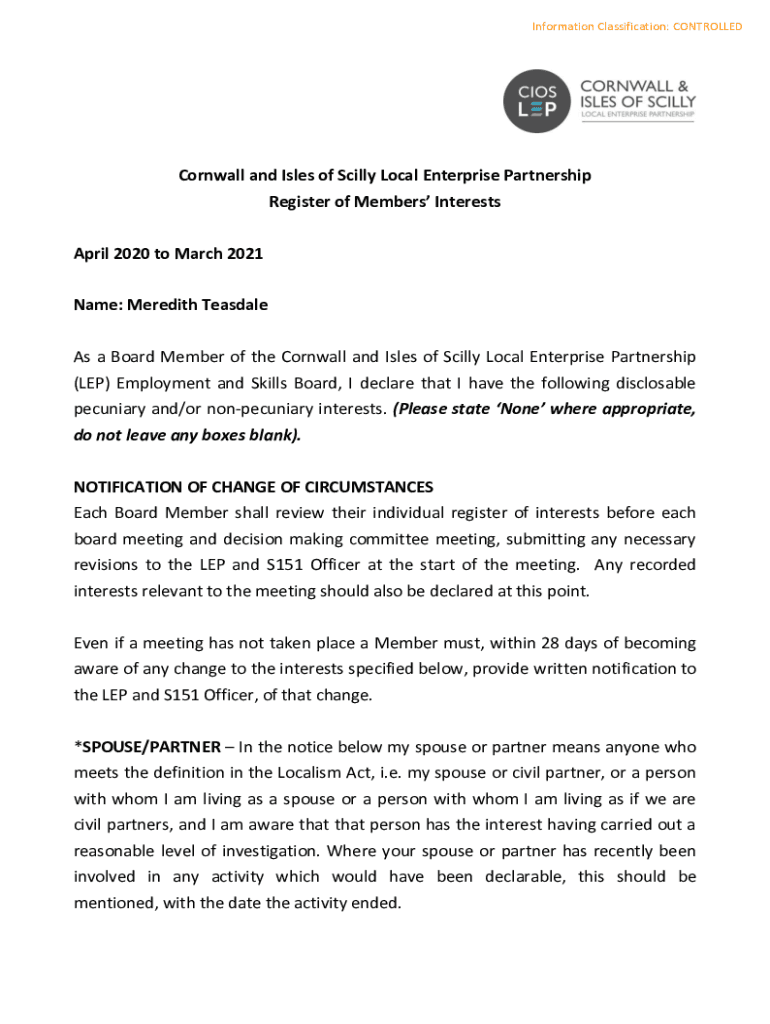 Information Classification: CONTROLLED Cornwall and Isles of Silly Local Enterprise Partnership