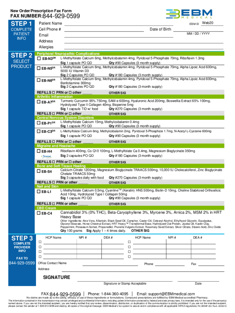 Get the free New Order/Prescription Fax Form FAX NUMBER ... - EBM Medical