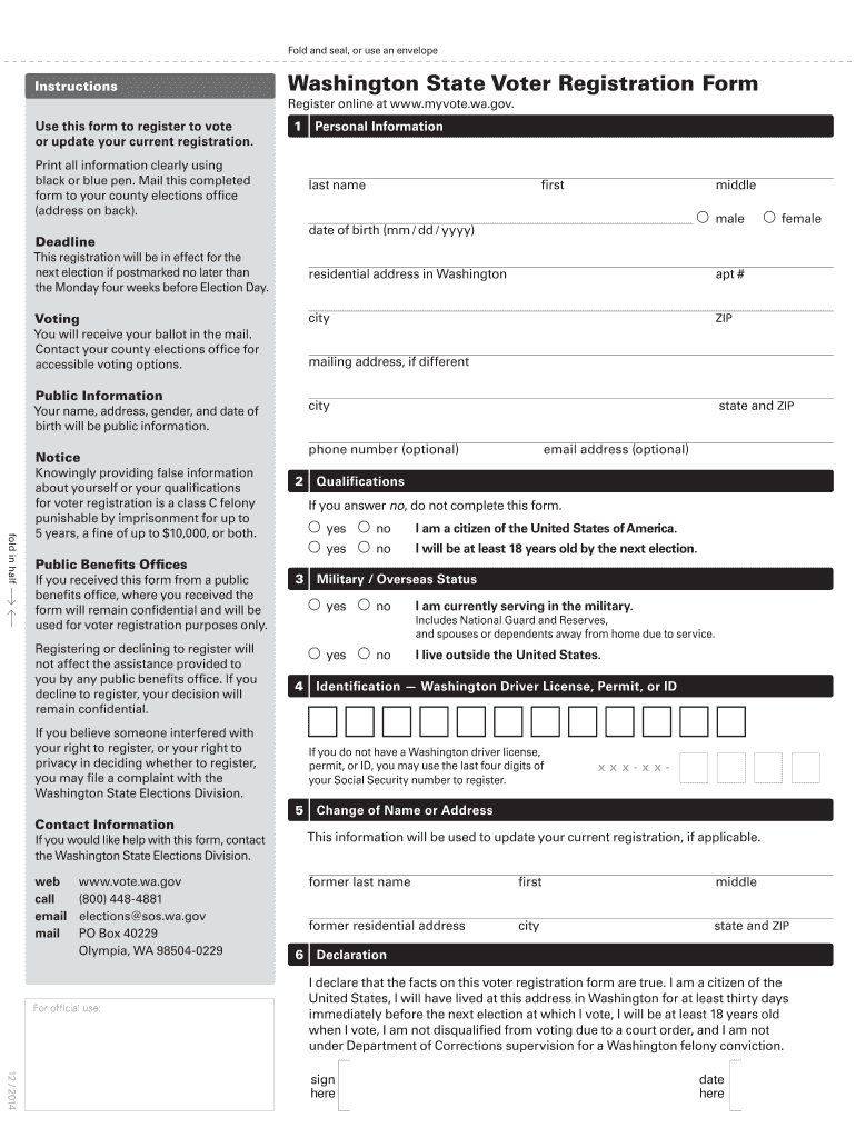Get the free Washington State Voter Registration Form