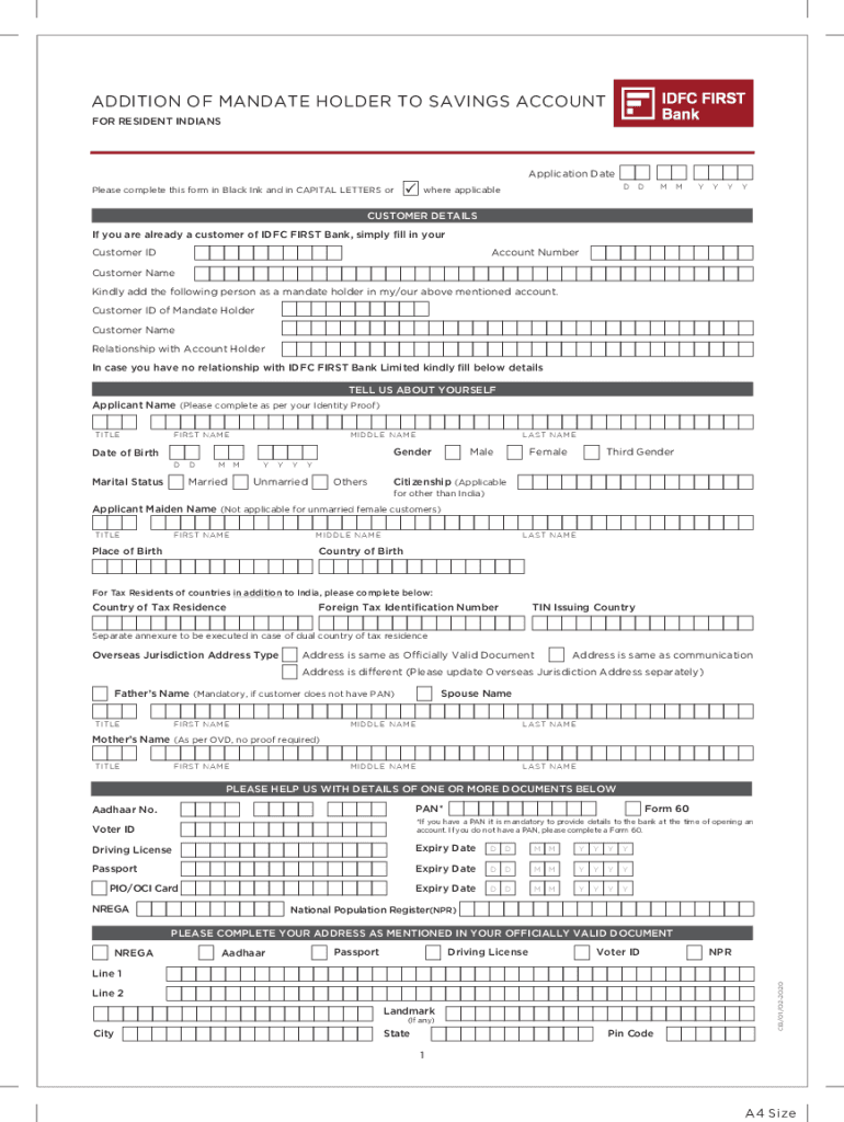 ADDITION OF MANDATE HOLDER TO SAVINGS ACCOUNT