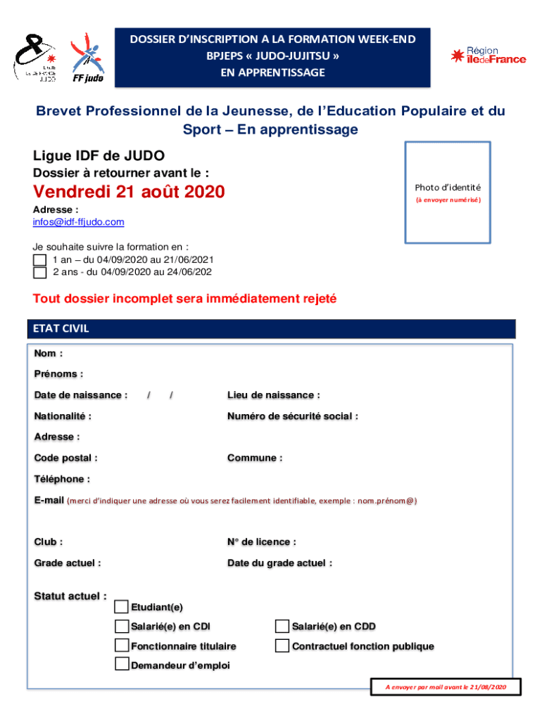Obtenir le gratuit NOTICE EXPLICATIVE BPJEPS JUDO-JUJITSU LIGUE IDF ... - judo91.com