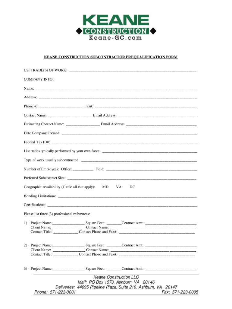 Get the free Keane Construction LLC Mail: PO Box 1573, Ashburn, VA ...