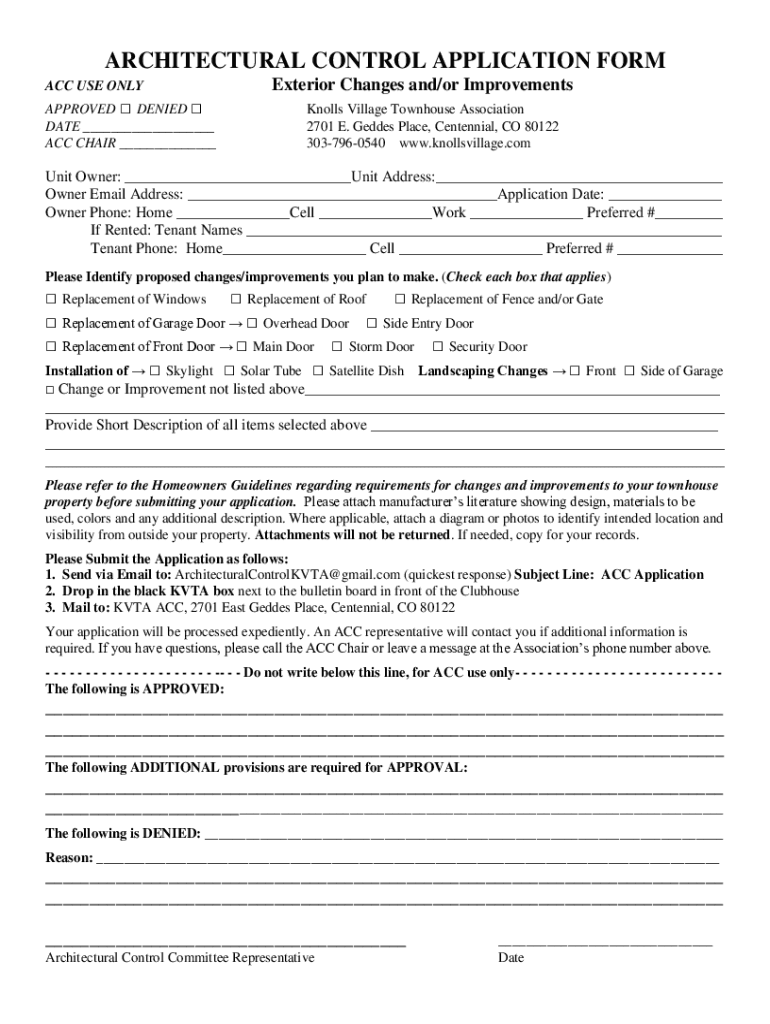 Get the free ARCHITECTURAL CONTROL APPLICATION FORM Exterior Changes ...