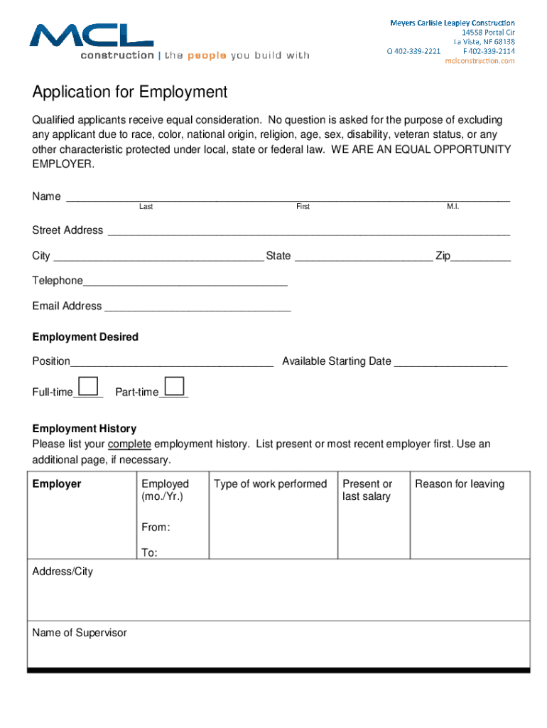 Email, fax, or share your application for employement form via URL. You can also download, print, or export forms to your preferred cloud storage service.