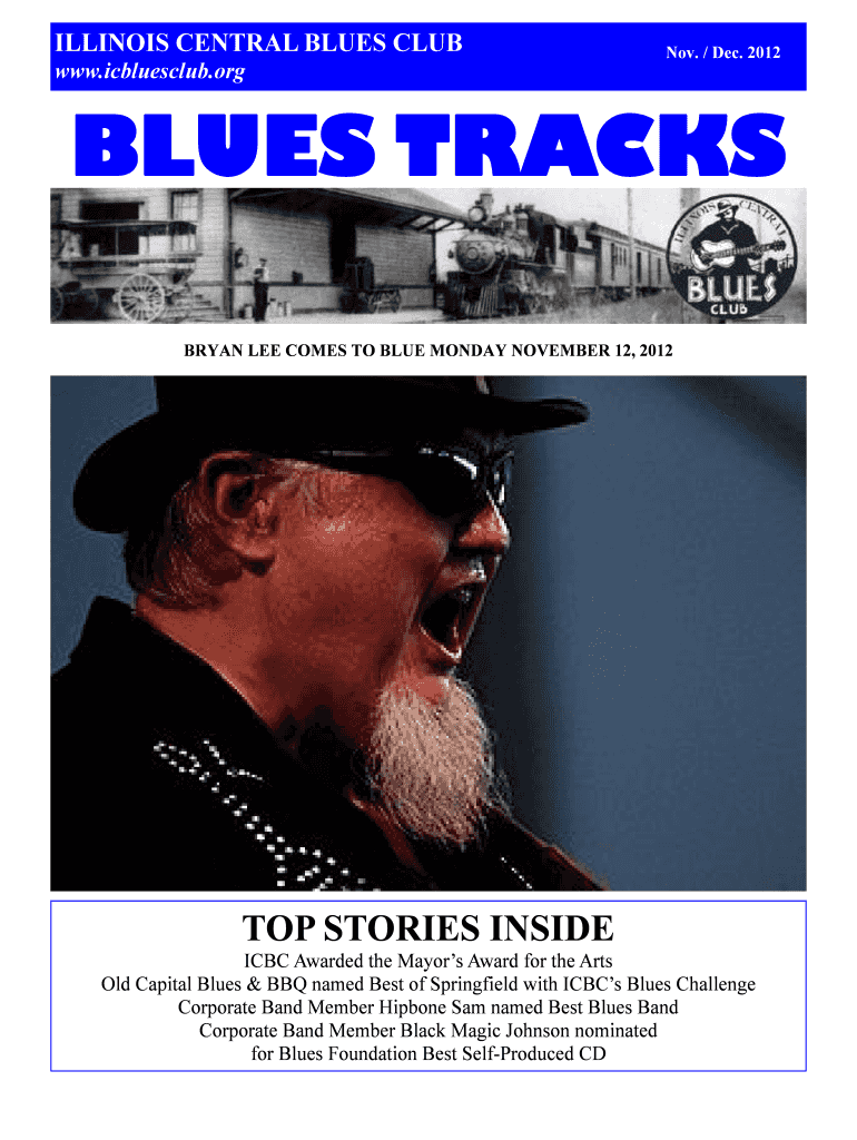 ILLINOIS CENTRAL BLUES CLUB www.icbluesclub.org Nov. / Dec. 2012 BLUES TRACKS BRYAN LEE COMES TO BLUE MONDAY, NOVEMBER 12, 2012, TOP STORIES INSIDE ICBC Awarded the Mayors Award for the Arts Old Capital