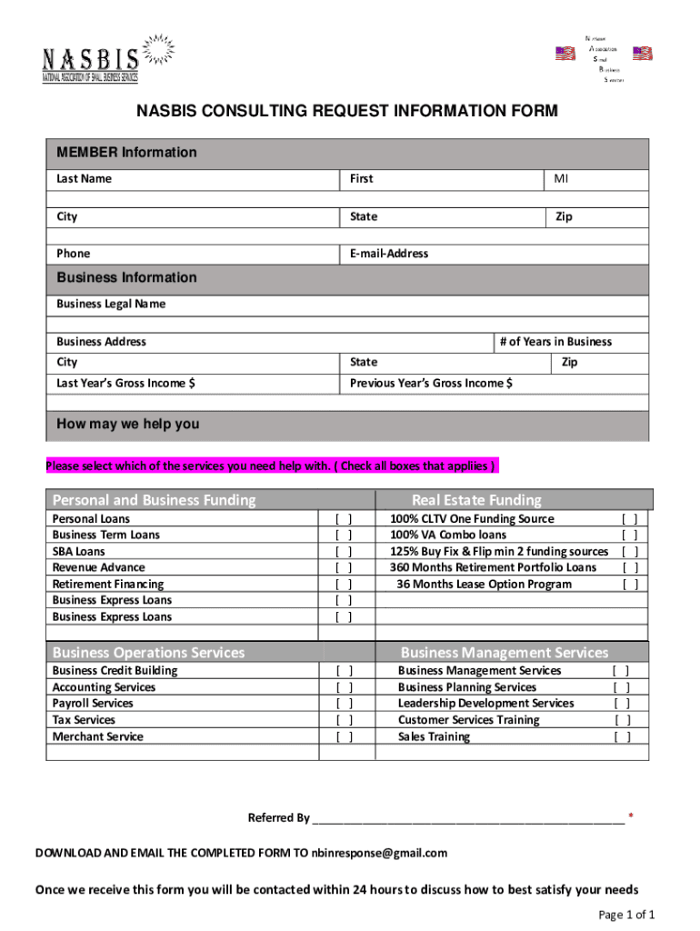 Get the free NASBIS CONSULTING REQUEST INFORMATION FORM