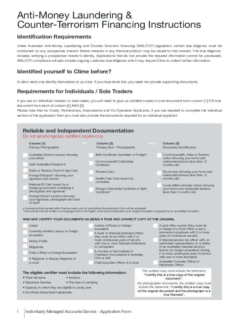 Individually Managed Account Service Application Form INTEGRITY TR TRANSPARENCY CONVICTION u l y 20 2 0ApplicationIndividually Managed Account Service? How to complete the application form 1. Complete