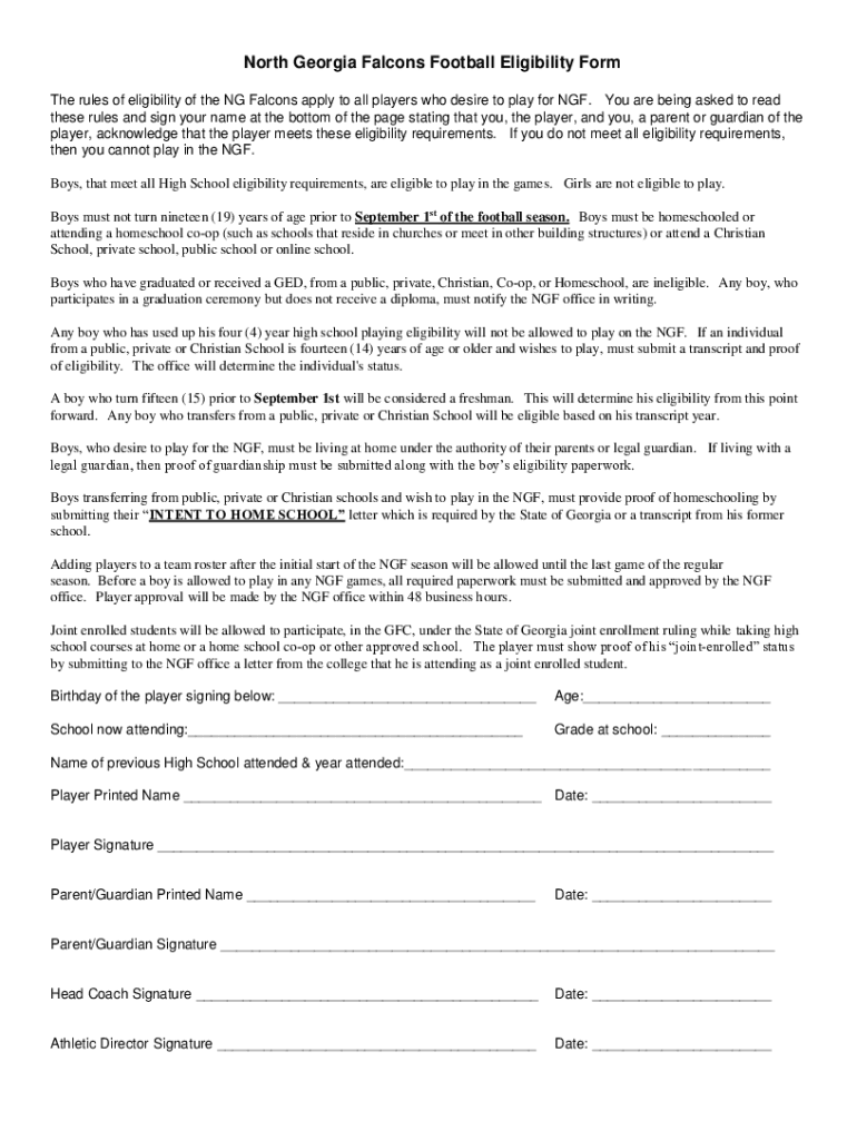 The rules of eligibility of the NG Falcons apply to all players who desire to play for NGC. You are being asked to read