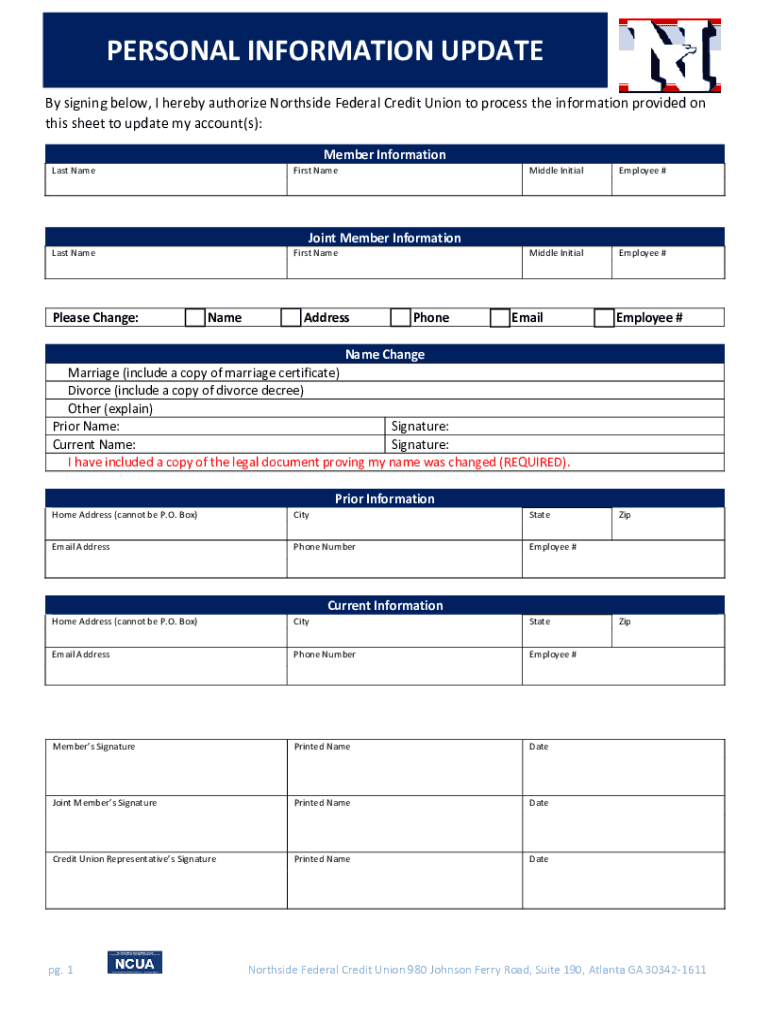 By signing below, I hereby authorize Northside Federal Credit Union to process the information provided on