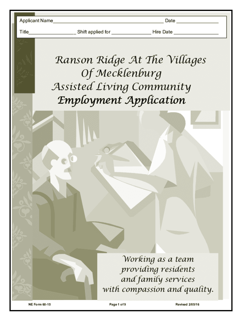 Applicant Name Date Title Shift applied for Hire Date Ransom Ridge At The Villages Of Mecklenburg Assisted Living Community Employment ApplicationWorking as a team providing residents and family services