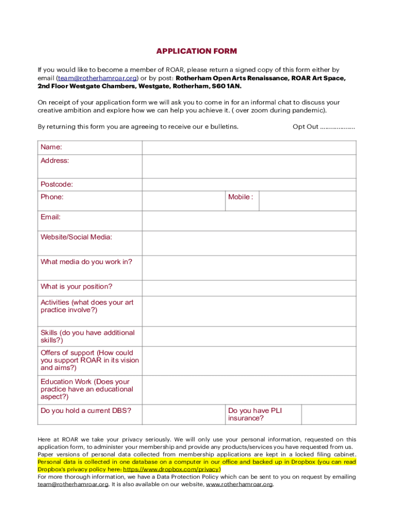 Get the free MEMBERSHIP FORM The only requirement is creative ambition
