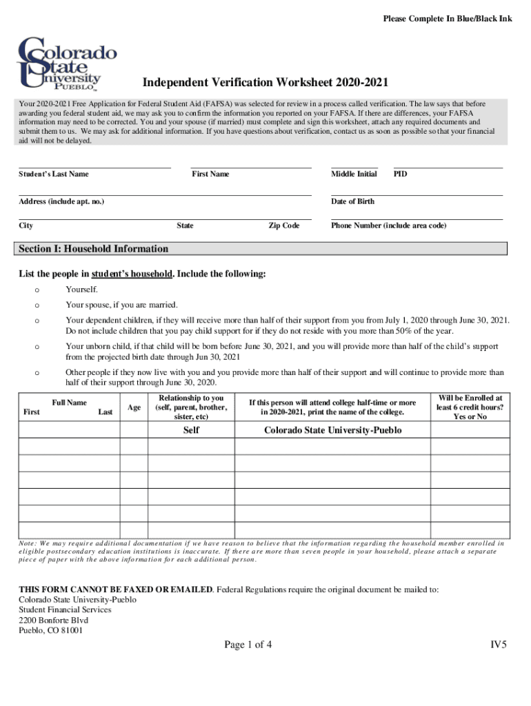 Please Complete In Blue/Black Independent Verification Worksheet 20202021