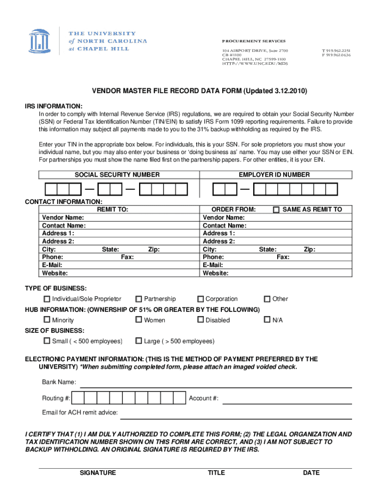 F 919.962.0636VENDOR MASTER FILE RECORD DATA FORM (Updated 3.12.2010)