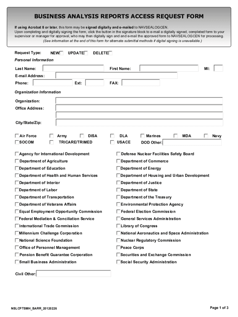BUSINESS ANALYSIS REPORTS ACCESS REQUEST FORM